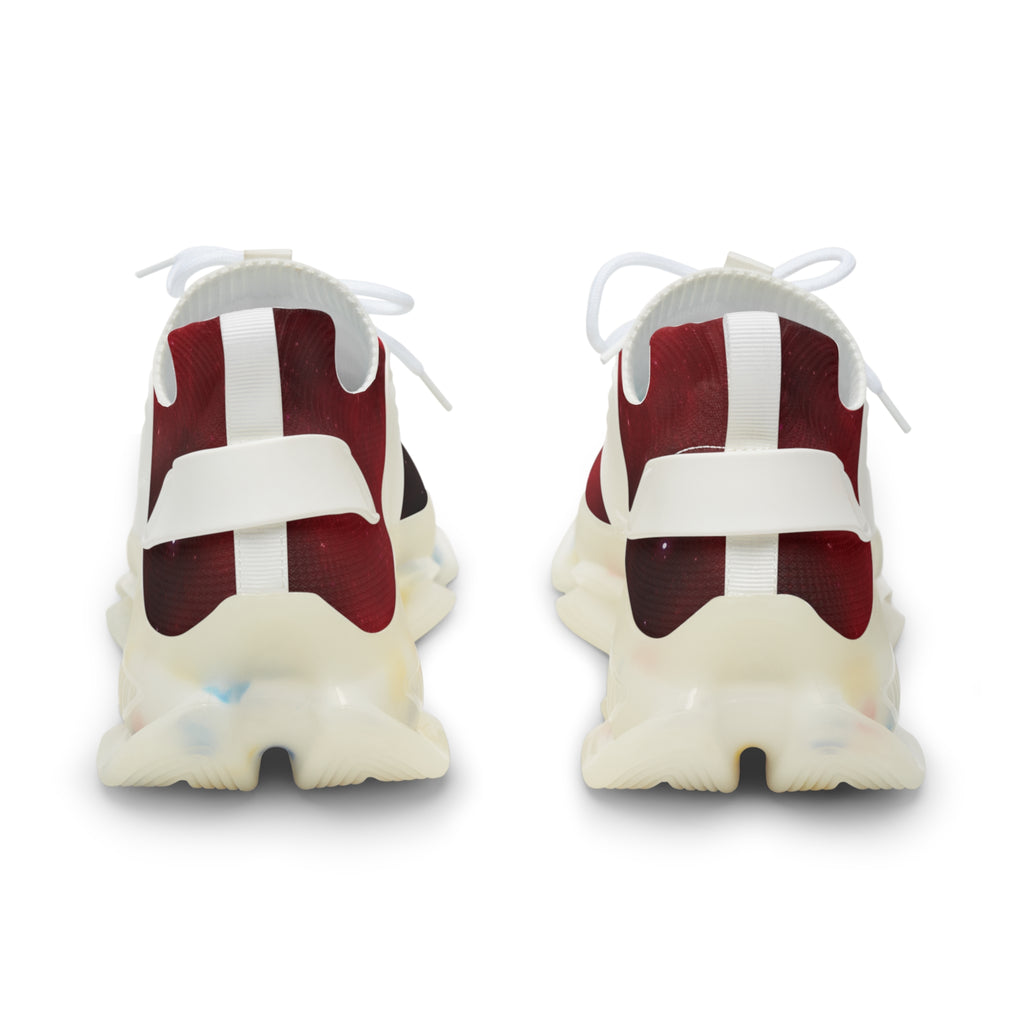 Check out these best red galaxy space printed designer stylish men's mesh sneakers that can provide extra height and comfort to your every day fashion and gym look. Hit the gym, outdoor track or the road in style with our designer mesh sneakers for men. These designer men's mesh-knit best sports shoes come with black detailing as well as a supremely comfy and thick foam sole that over time adjust to your feet's unique contours for enhanced comfort and height. The soft sole, made with TPU and EVA materials, along with the mesh construction deliver high breathability that is excellent for sports. We offer sizes from US size 5-12 for men of various shoe sizes. All men's mesh sports sneakers footwear shoes are made-to-order and 100% brand new and we ship internationally worldwide to most countries.