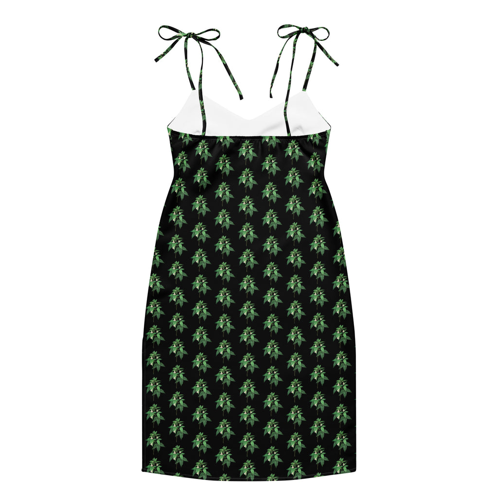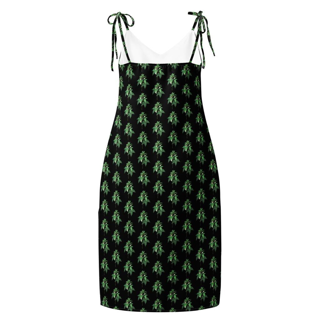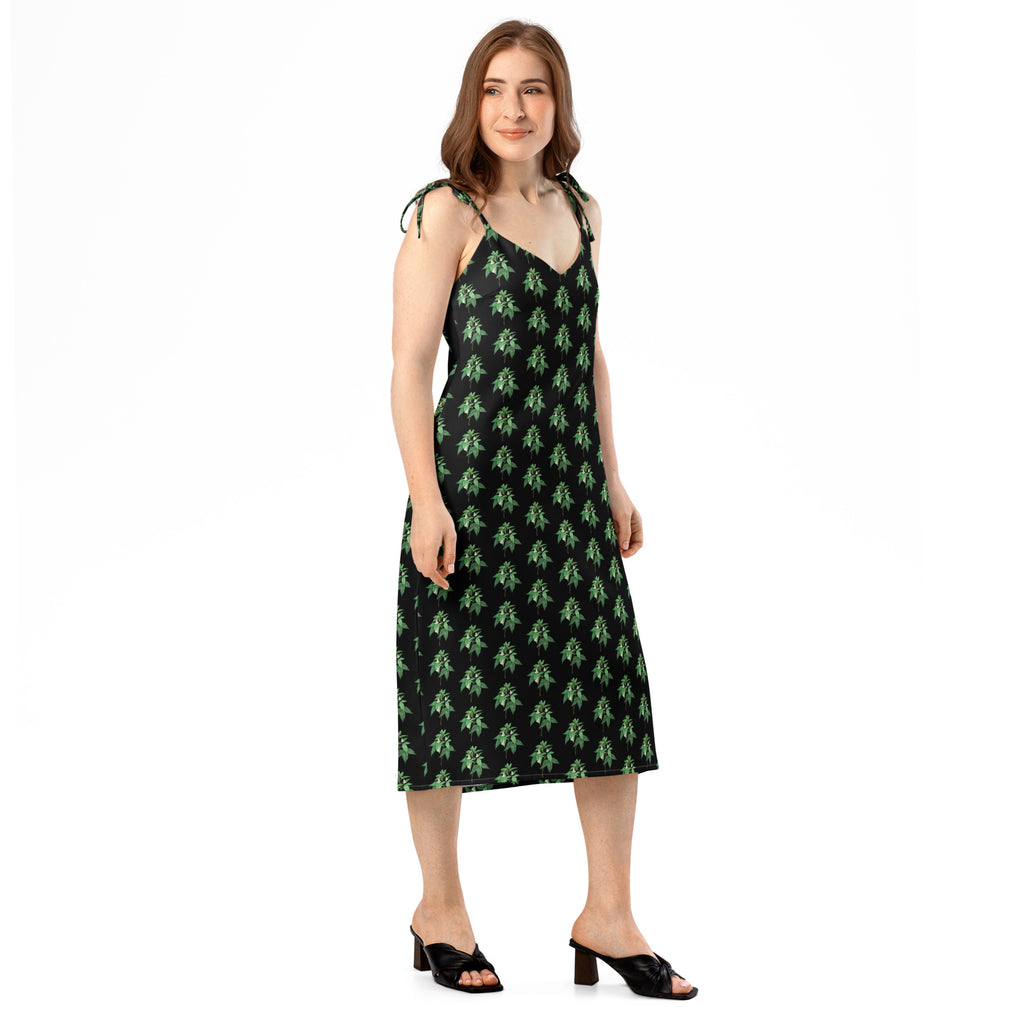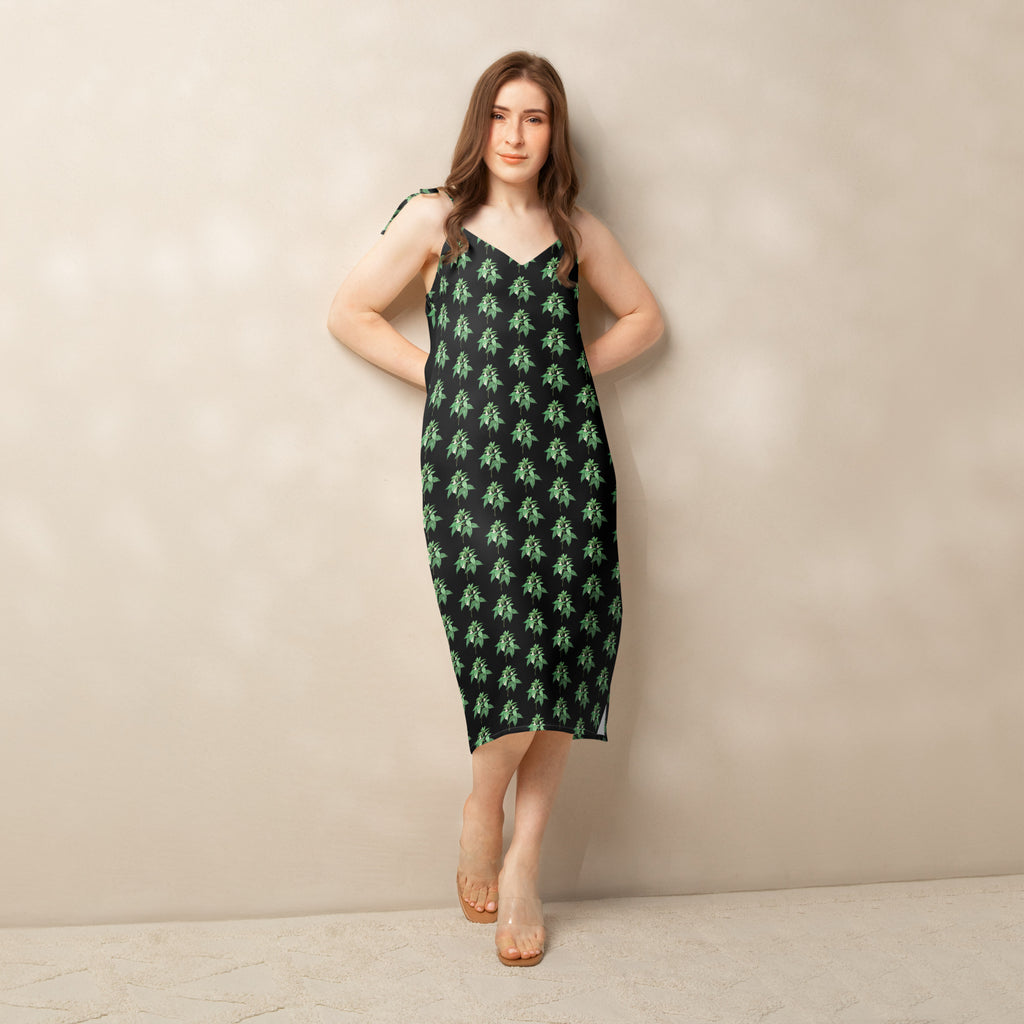 Black Floral Women's Designer Dress, Tie-strap midi dress