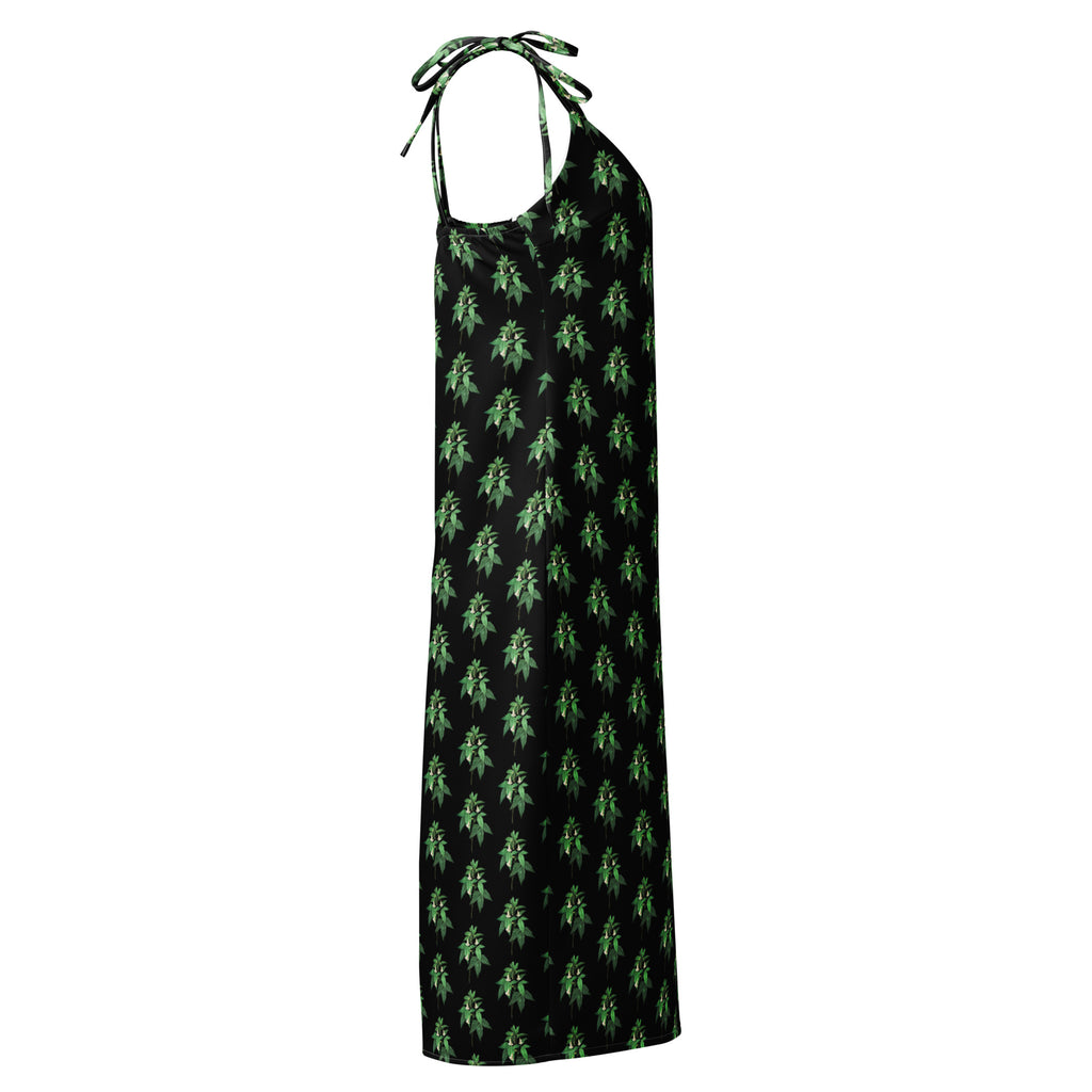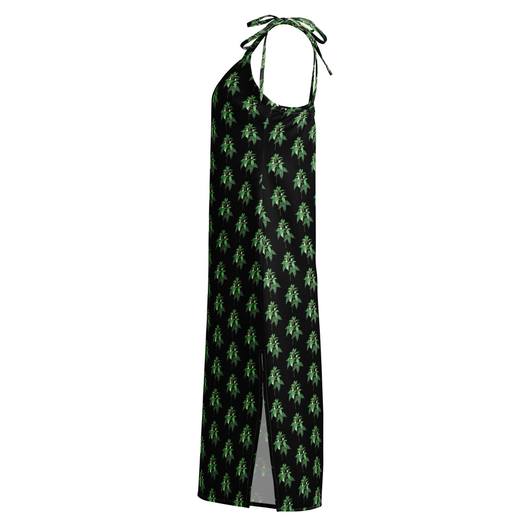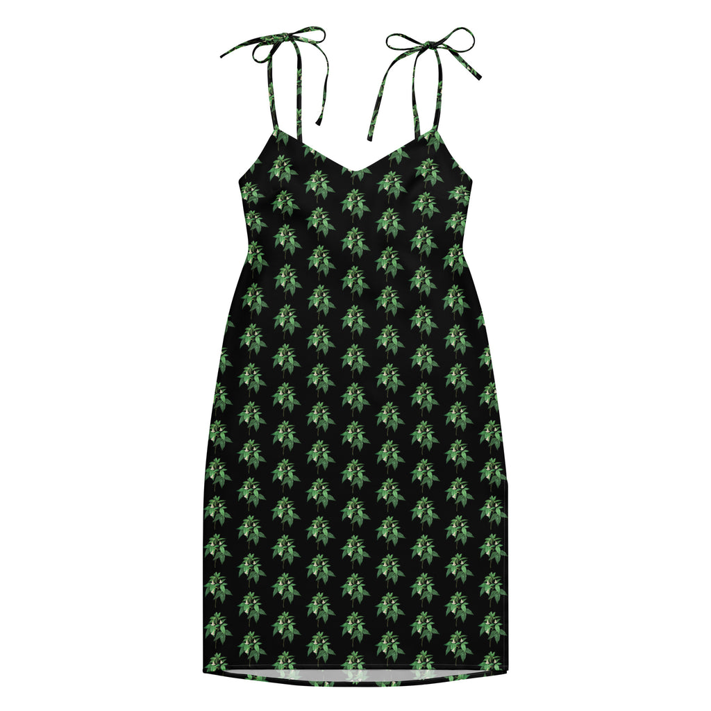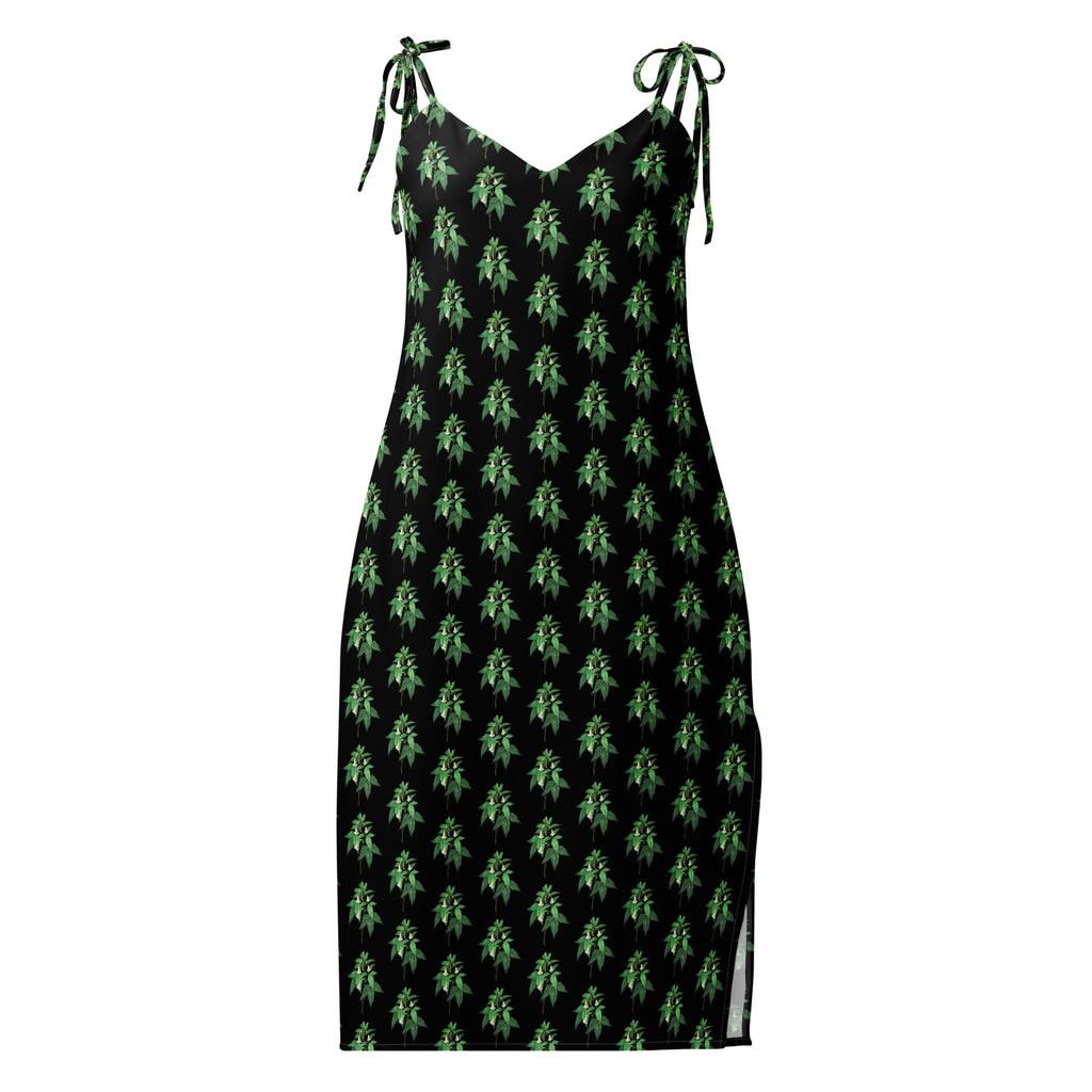 Black Floral Women's Designer Dress, Tie-strap midi dress