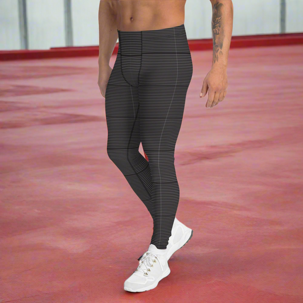 Black Striped Modern Men's Leggings, Monochrome Classic Meggings Tights For Men-Heidikimurart Limited -Heidi Kimura Art LLC Black Striped Modern Men's Leggings, Monochrome Classic Sexy Meggings Men's Workout Gym Tights Leggings, Men's Compression Tights Pants - Made in USA/ EU/ MX (US Size: XS-3XL)  Black Striped Modern Men's Leggings, Monochrome Classic Sexy Meggings Men's Workout Gym Tights Leggings, Men's Compression Tights Pants - Made in USA/ EU/ MX (US Size: XS-3XL)