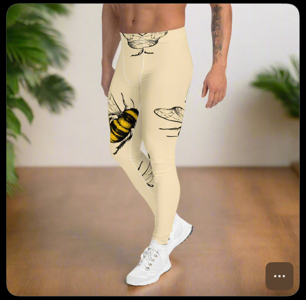 Product mockupYellow Bees Printed Men's Leggings, Pastel Yellow Been Pattern Designer Print Sexy Meggings Men's Workout Gym Tights Leggings, Men's Compression Tights Pants - Made in USA/ EU/ MX (US Size: XS-3XL) Patterned Leggings For Men, Tights Workout, Men's Compression Pants, Mens Festival Leggings, Mens Leggings Fashion, Mens Tights