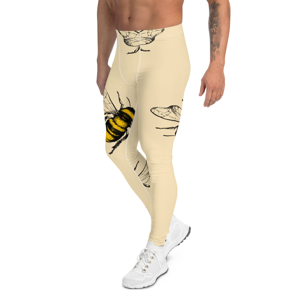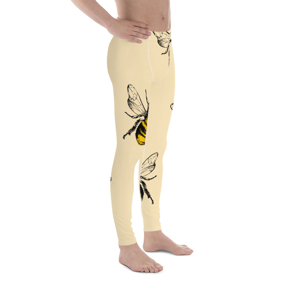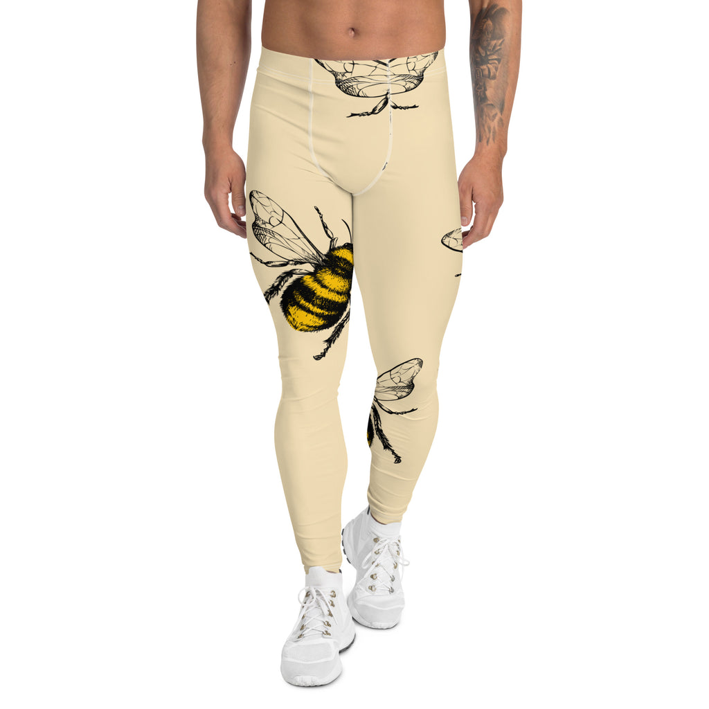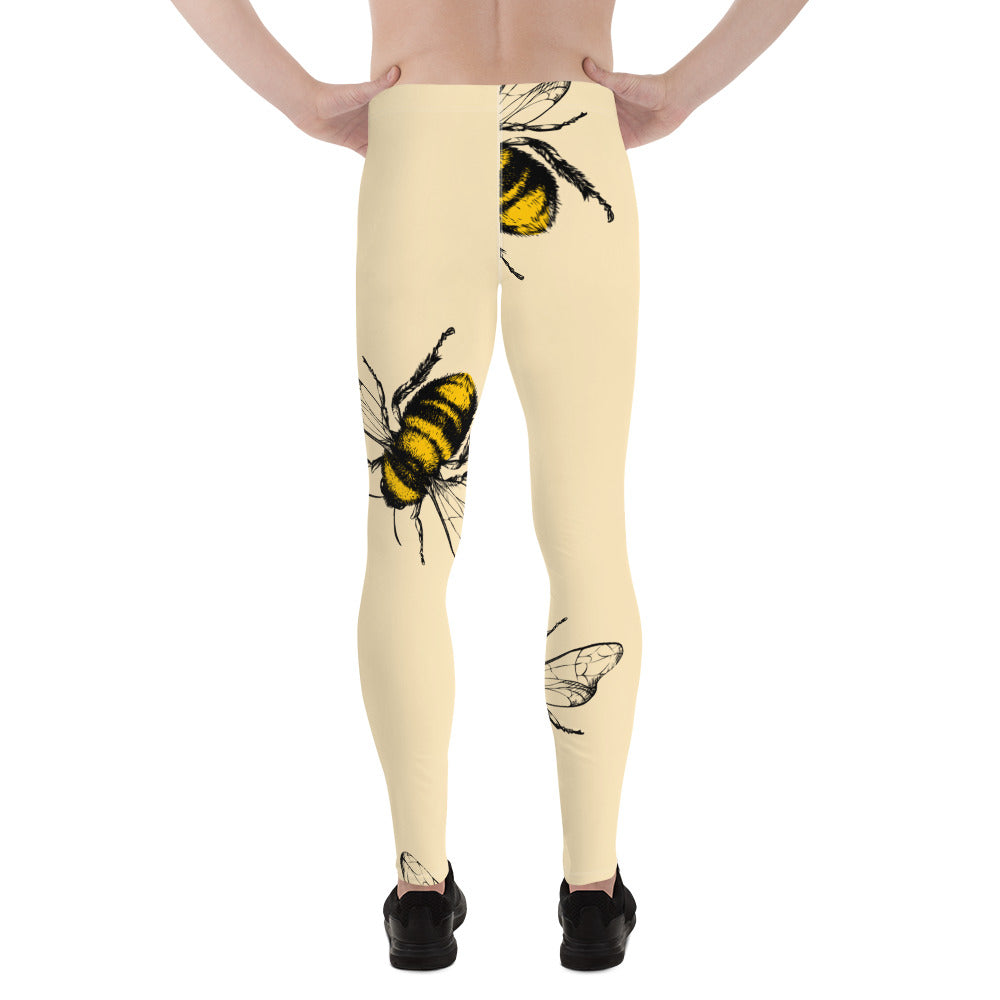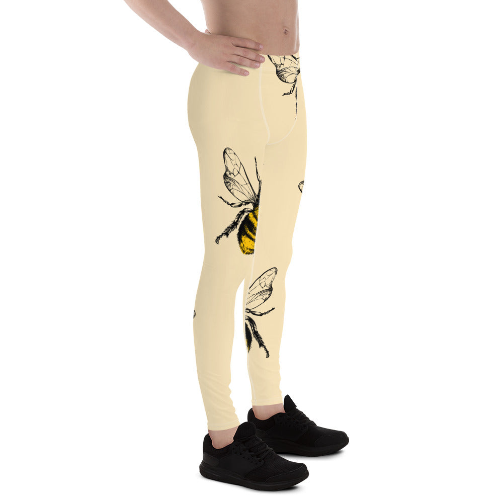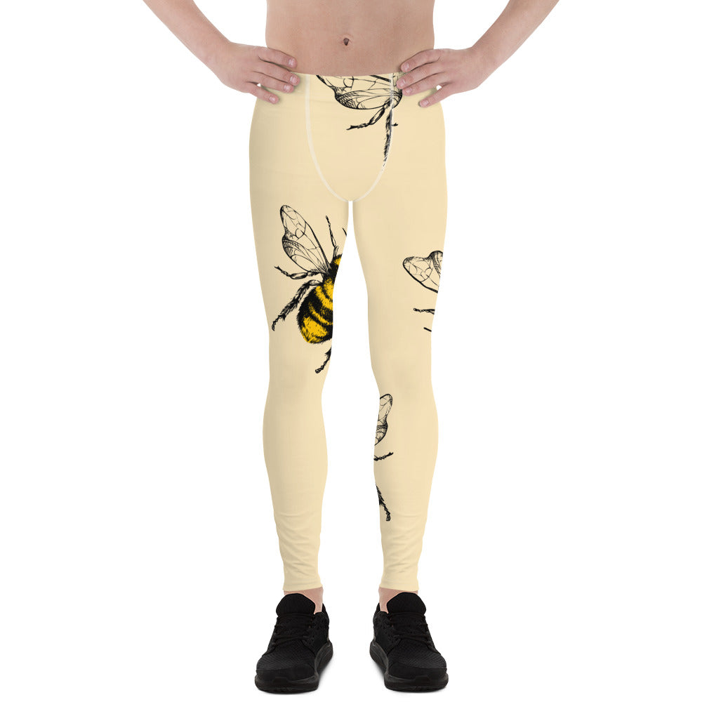 Yellow Bees Printed Men's Leggings, Pastel Yellow Bees Pattern Designer Print Sexy Meggings Men's Workout Gym Tights Leggings, Men's Compression Tights Pants - Made in USA/ EU/ MX (US Size: XS-3XL) Patterned Leggings For Men, Tights Workout, Men's Compression Pants, Mens Festival Leggings, Mens Leggings Fashion, Mens Tights