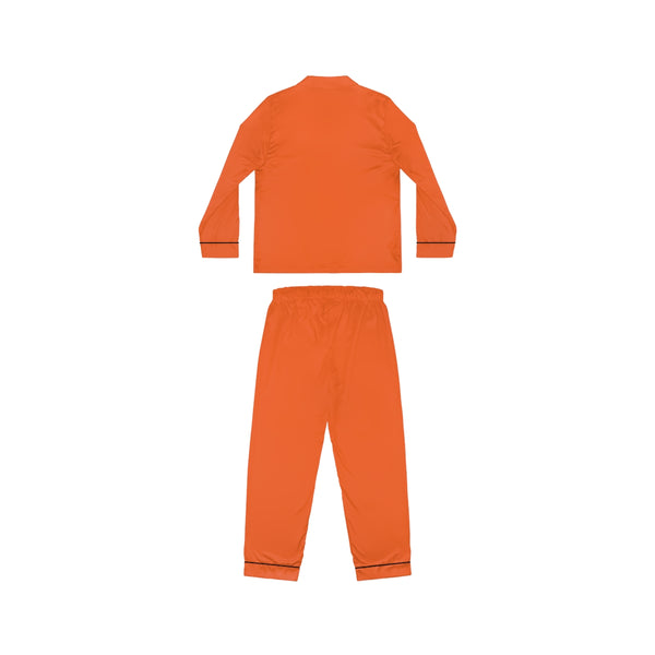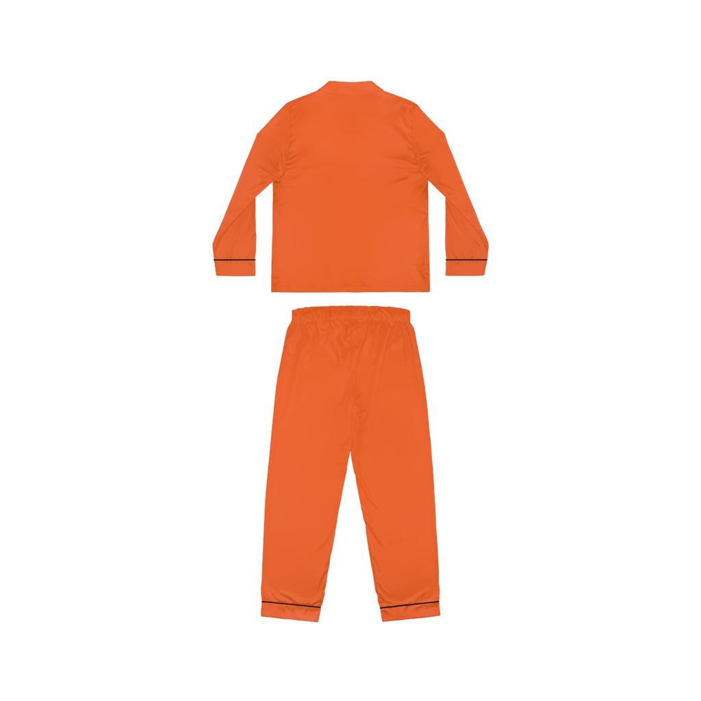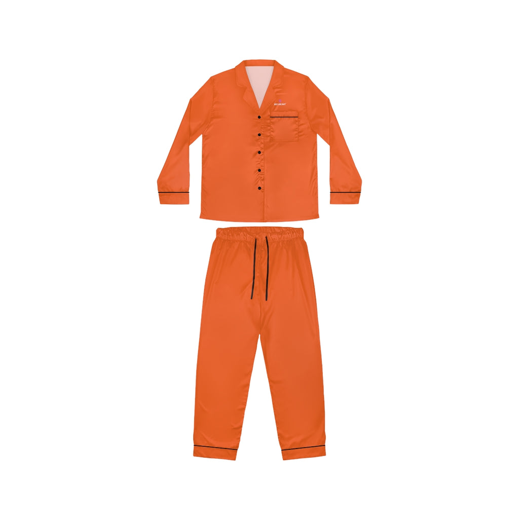 Bright Orange Women's Satin Pajamas, Luxury Premium Solid Color Loungewear For Women