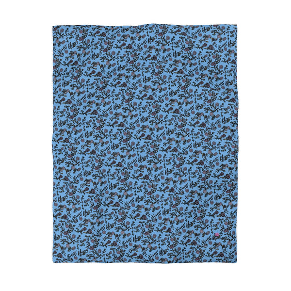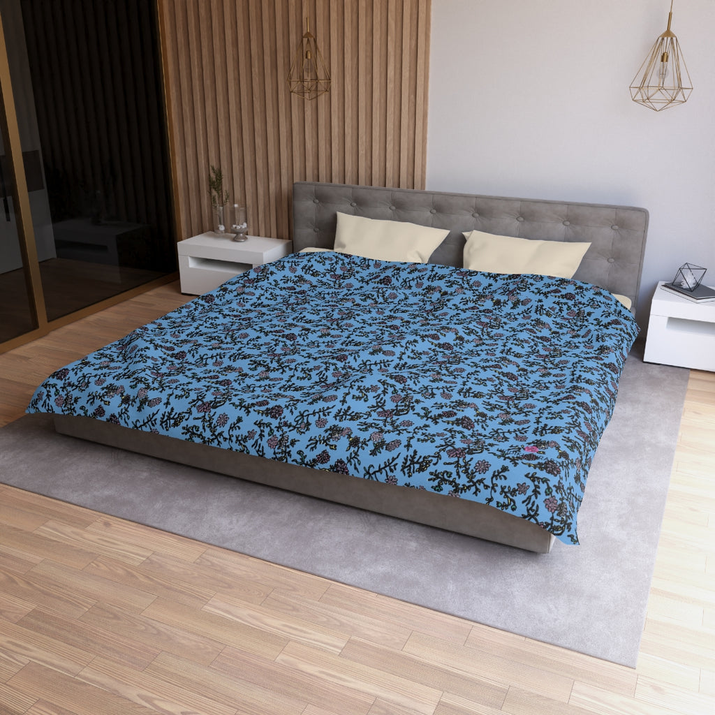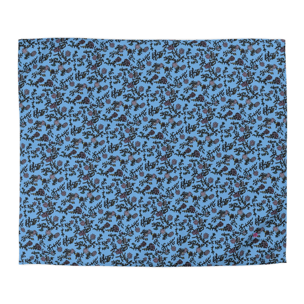 Pastel Blue Floral Duvet Cover,  Floral Microfiber Duvet Cover