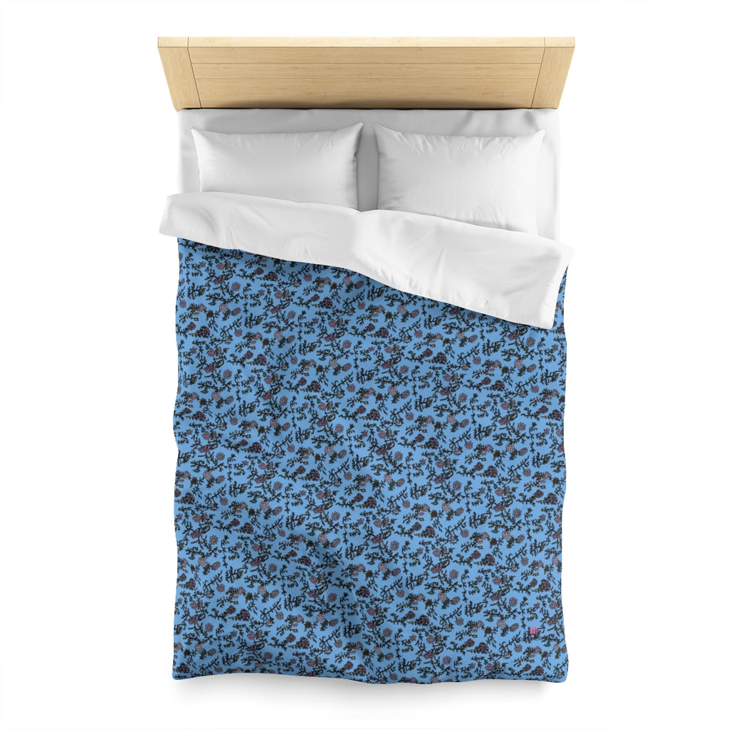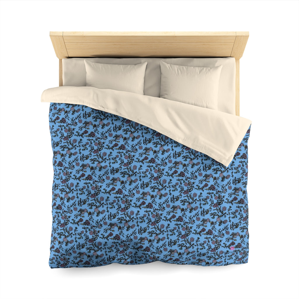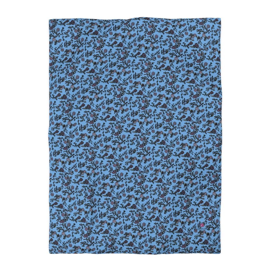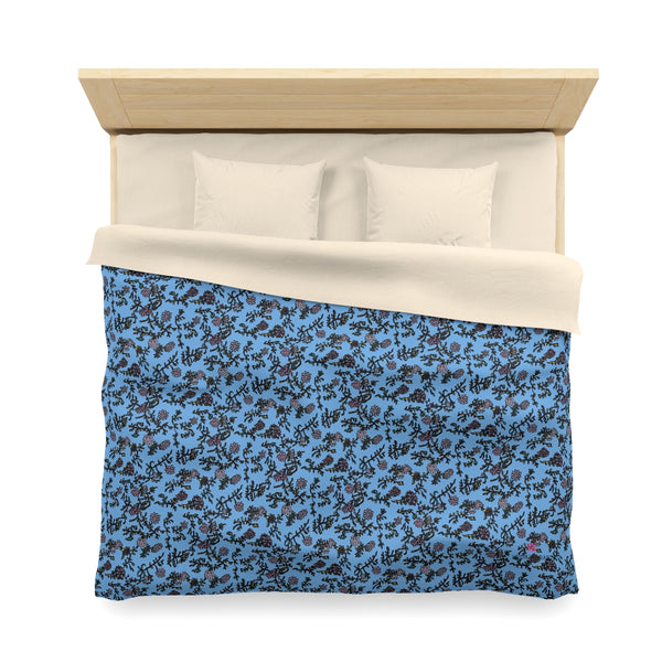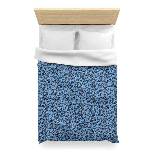 Pastel Blue Floral Duvet Cover, Floral Microfiber Duvet Cover