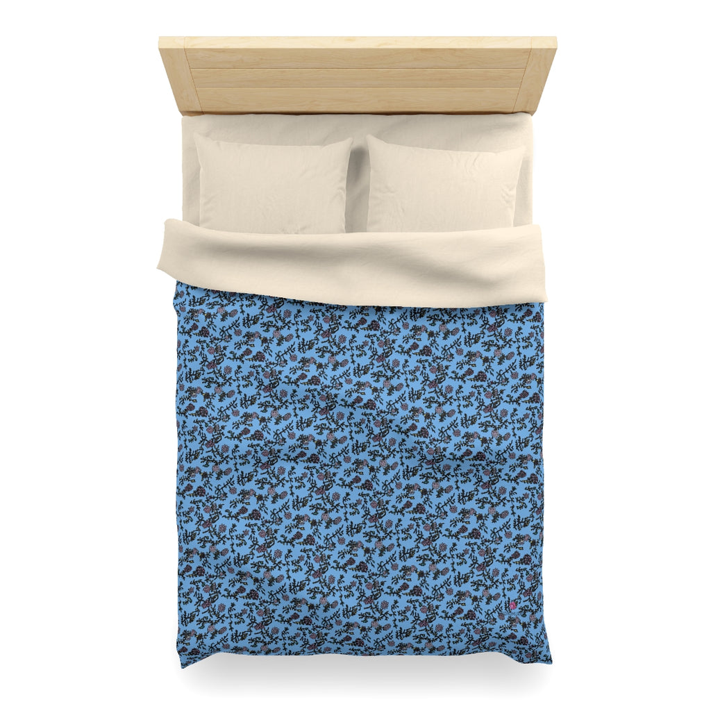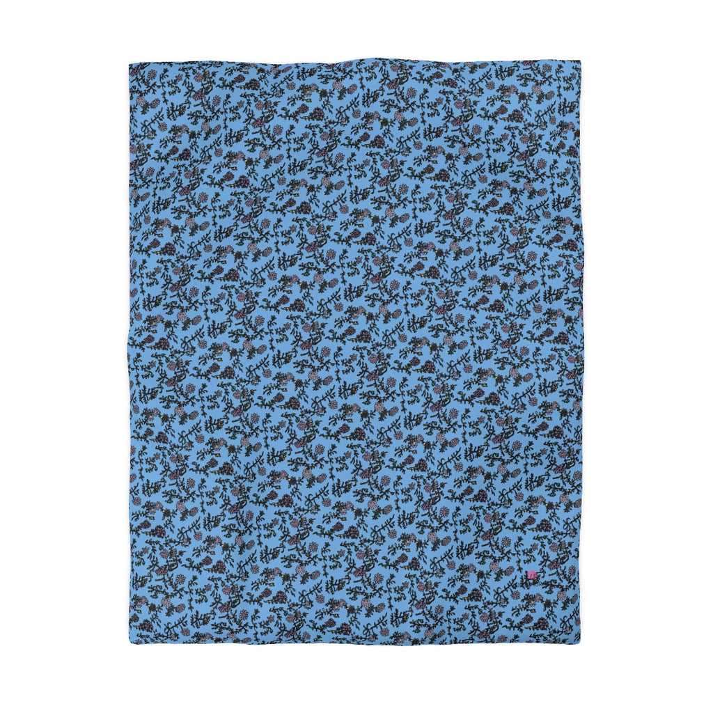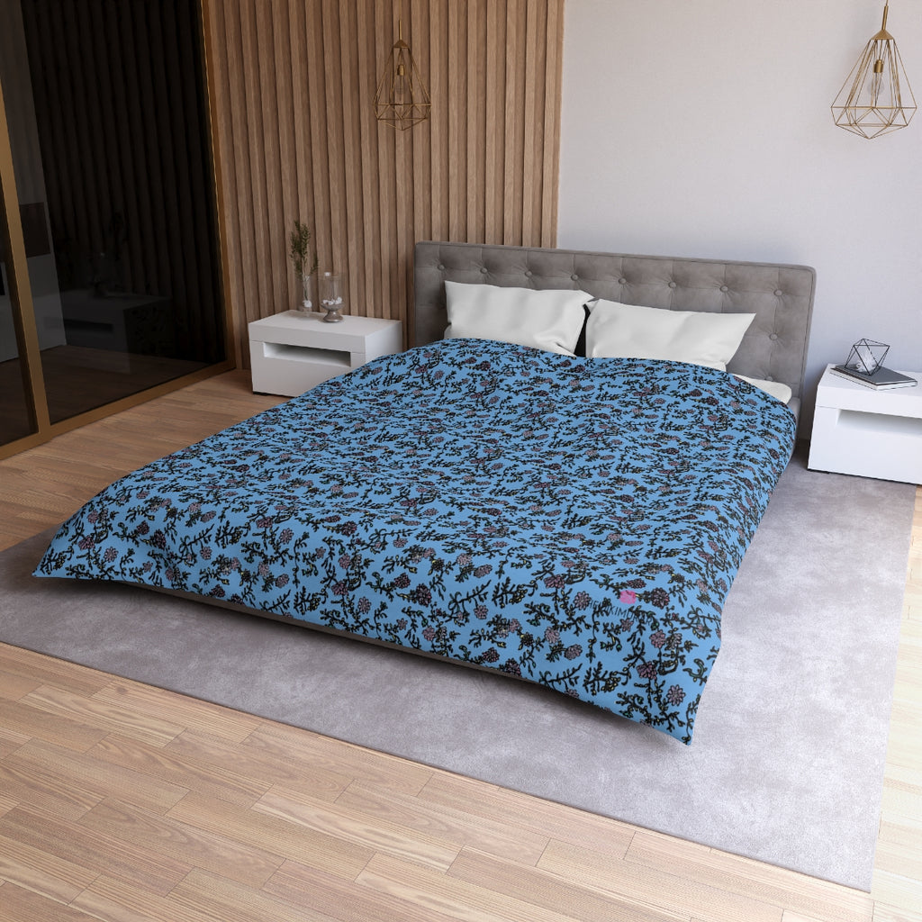 Pastel Blue Floral Duvet Cover, Floral Microfiber Duvet Cover