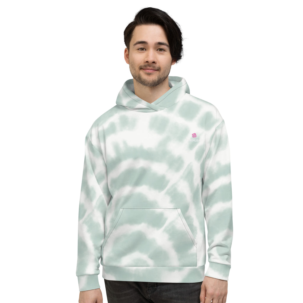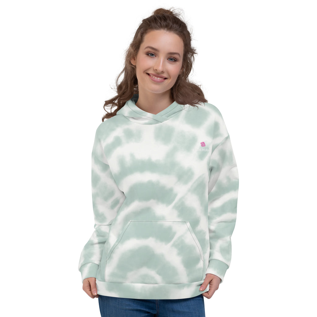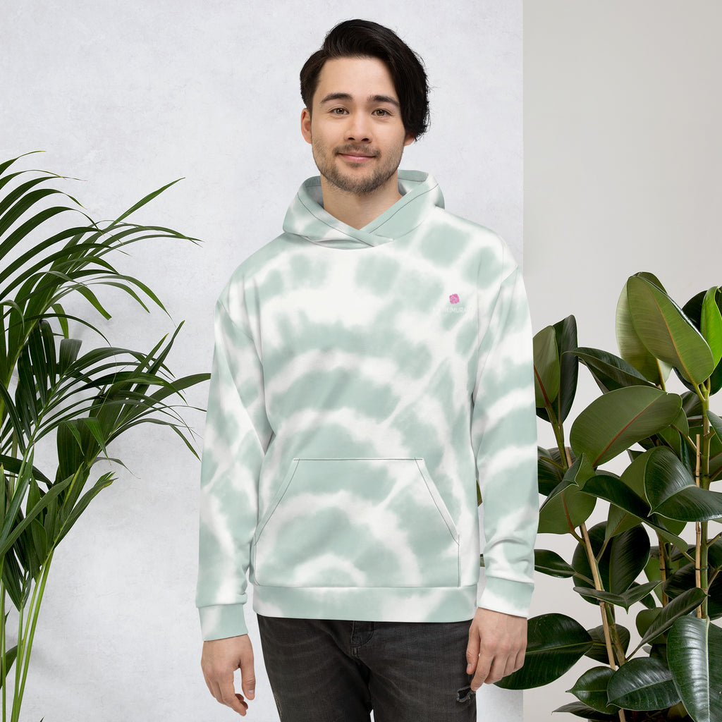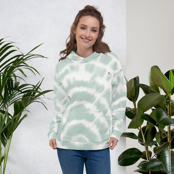Pastel Green Tie Dye Hoodie, Green White Tie Dye Hoodie, Unisex Hoodie
