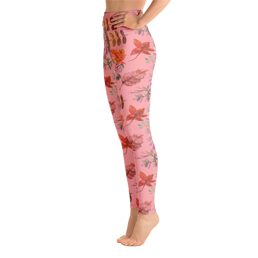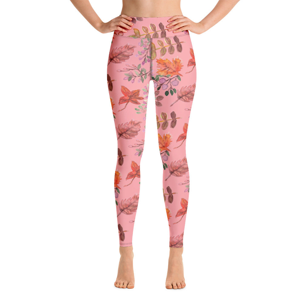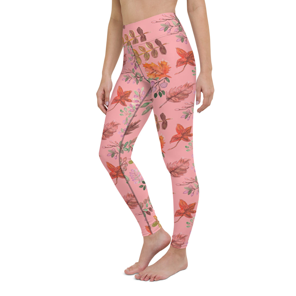 Pink Fall Leaves Yoga Leggings