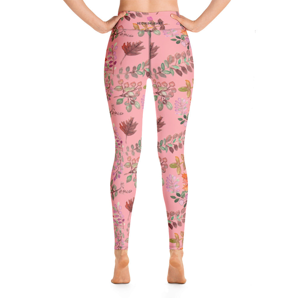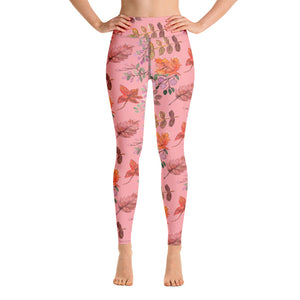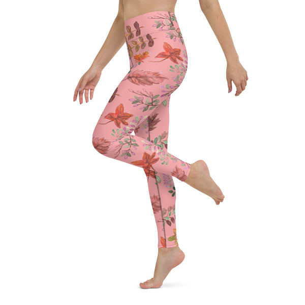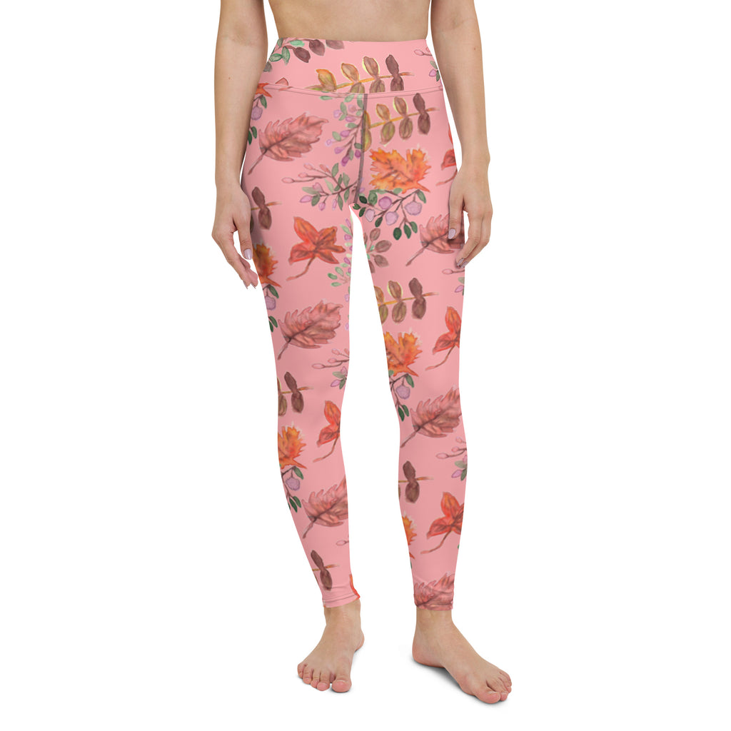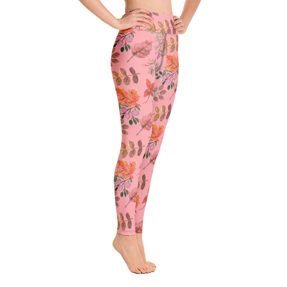Pink Fall Leaves Yoga Leggings