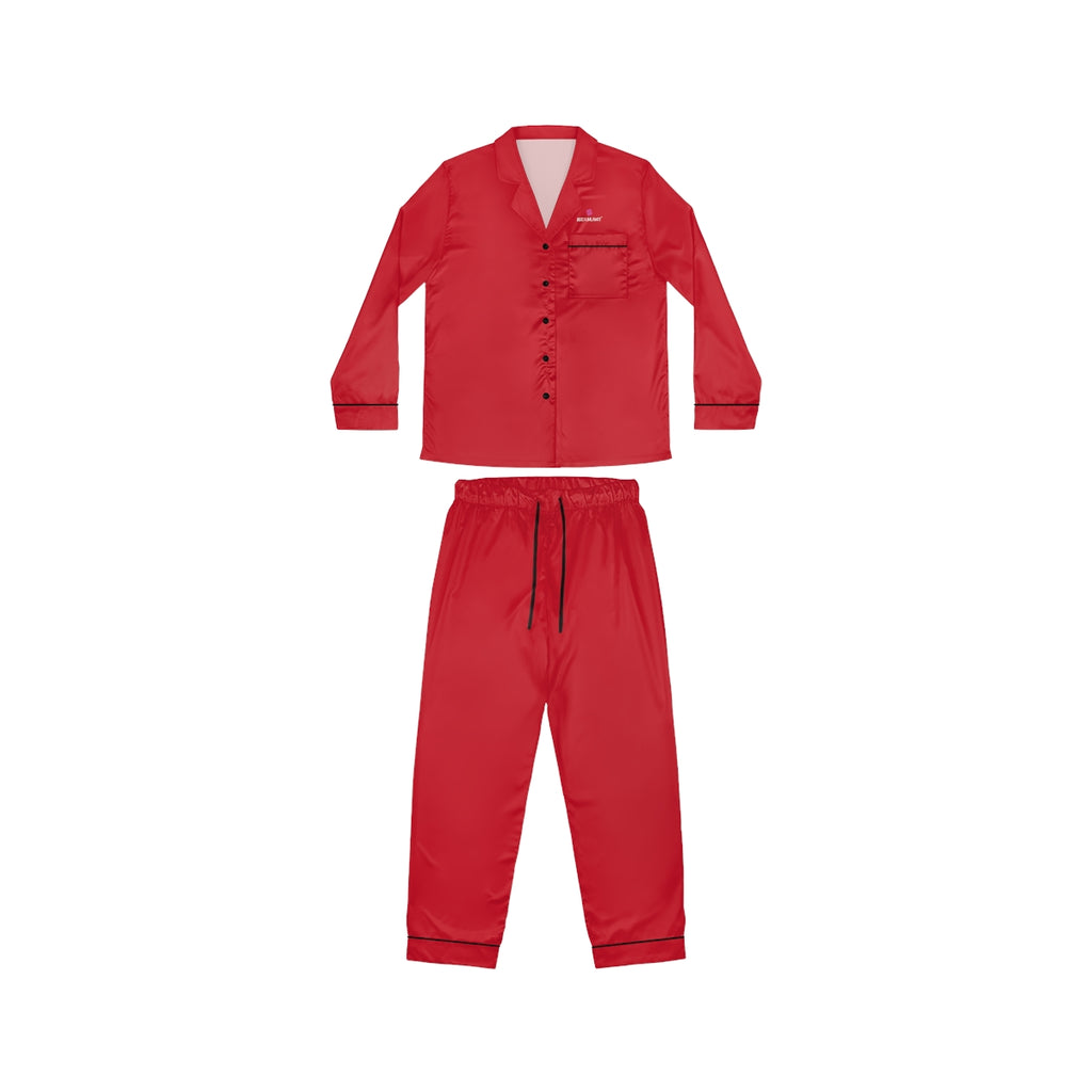 Red Color Women's Satin Pajamas, Bright Red Luxury Premium Solid Color Lougewear For Women